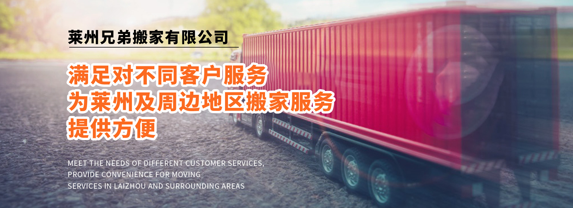 公司備有:廂式貨車、普通貨車、面包車等,滿足對不同客戶服務(wù),為萊州及周邊地區(qū)搬家服務(wù),提供方便。曾被廣大客戶評為“專業(yè)、專心、用心”的搬家公司。以合理收費(fèi)為標(biāo)準(zhǔn),以客戶滿意為服務(wù)質(zhì)量,力作萊州人的好兄弟!您的滿意就是我們的追求!歡迎各企事業(yè)單位及個人來電咨詢!